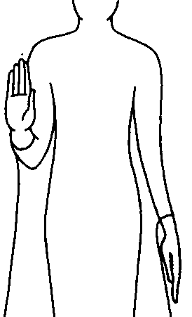 Erhebung der Hand mit der Innenfläche nach außen. Die