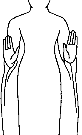 Innenfläche nach außen. Wenn dazu die Linke schlaff