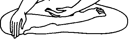 rechte Hand liegt bei leicht angewinkeltem Arm auf der