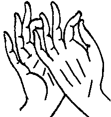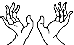 Handflächen weisen nach außen zum Betrachter hin. Geste