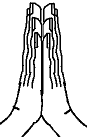 sind vor der Brust gefaltet, die Finger liegen sämtlich