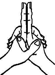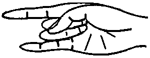 Hand, Mittelfinger und Ringfinger sind eingekrümmt und