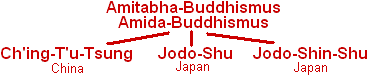 Unterschulen: in China: Ching-Tu-Tsung, in Japan: Jodo-Shin-Shu (Wahre-Reines-Land-Schule) und Jodo-shu (Reines-Land-Schule)
