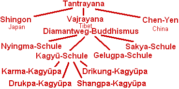 Unterschulen: China: Chen-Yen (Mi-Tsung), Japan: Shingon-Shu, Tibet: Vajrayana. Vom Vajrayana gibt es wiederum 4 wichtige Unterschulen: