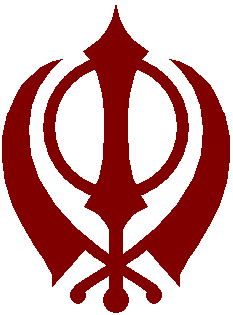Das Sikh-Aum: Aum oder Om ist ein heiliges Wort aus dem Sanskrit, welches den Anfang vieler Mantras und Gebete darstellt. Die Silbe steht für Expansion, für Ausdehnung, für Entfaltung, für das Werden, für Schöpfung. "Aum" ist gewissermaßen der "Ur-Laut" oder die "Ur-Silbe". In letzter Instanz steht die Silbe für das Schöpferisch-Göttliche. Das Zeichen selbst wird "Omkar", "Ek Onkar" oder "Aumkar" genannt, während die Silbe selbst "Aum" oder "Om" ist. Bei den Sikh hat es eine spezielle Bedeutung: "Es gibt keine Gottheit außer Gott". Die Silbe wird zum Bekenntnis des Monotheismus. Viele indische Religionen verwenden das Omkar, bei den Sikh hat es in der Gurmukhi-Schrift folgendes Aussehen: