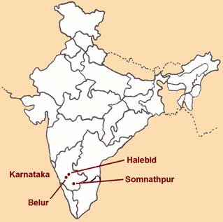 Die Blütezeit der sog. Hoysala-Kultur liegt im 11.-14. Jh. Zu dieser Zeit war das Hoysala-Reich eine blühende Kultur rings um die alte Hauptstadt Mysore, in deren Nähe auch die berühmtesten Tempel liegen. Die Dynastie ist nach dem ersten Oberhaupt namens Sala benannt. Ursprünglich bekannte sich die Dynastie zum Jainismus, trat dann zum Hinduismus über und errichtete einige der prachtvollsten Tempel Indiens. Der Glaubenswechsel führte zu einer beispiellosen Bautätigkeit, Quellen sprechen von ca. 1500 Tempeln, die in der Zeit der Hoysala-Könige erbaut wurden. Besonders begünstigt wurde die reiche künstlerische und architektonische Entwicklung durch das Freiwerden von Künstlern und Handwerkskräften aus nördlichen Regionen, wo nach der Übernahme der Macht durch die Muslime weniger Bedarf an hinduistischen Tempeln war. Natürlich konnten sie ihre Fähigkeiten auch den neuen Herrschern zur Verfügung stellen, aber das Abwandern in ein wohlhabendes und kunsthungriges Hindu-Reich im Süden war ebenfalls eine attraktive Option. Erst waren die Hoysala-Herrscher Vasallen der Chalukyas, doch im Laufe der Zeit wurden sie so mächtig, daß sie sich von den Chalukyas lossagen und ihre Unabhängigkeit erklären konnten. Zeitweise kontrollierten sie ganz Süd-Karnataka. Heute befinden sich die architektonischen Zeugen der einstigen Blüte im Bundesstaat Karnataka. Im Jahre 1327 wurde die Hoysala-Dynastie von den Muslimen verdrängt, doch das islamische Zwischenspiel währte nur kurz, denn um 1336 wurde das Gebiet von den Vijayanagars (1336-1586) zurückerobert, die ihr Herrschaftszentrum in der Gegend von Hampi hatten. Danach kippten die Machtverhältnisse wiederum zu Gunsten des Sultanates von Delhi.