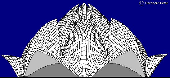 Die 27 riesigen, schalenförmigen Blütenblätter, 13,3-25,5 cm dick, sind im Kern aus Beton und dann mit blendend weißen Marmorplatten verkleidet. Jede einzelne Marmorplatte ist exakt so geschnitten, daß die Trennlinien ein geometrisches Muster erzeugen, das der Linienführung der Blütenblätter folgt. Insgesamt gibt es an dem gesamten Bau keine einzige gerade Linie eine architektonische Meisterleistung.