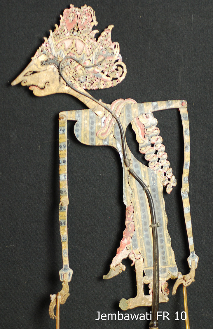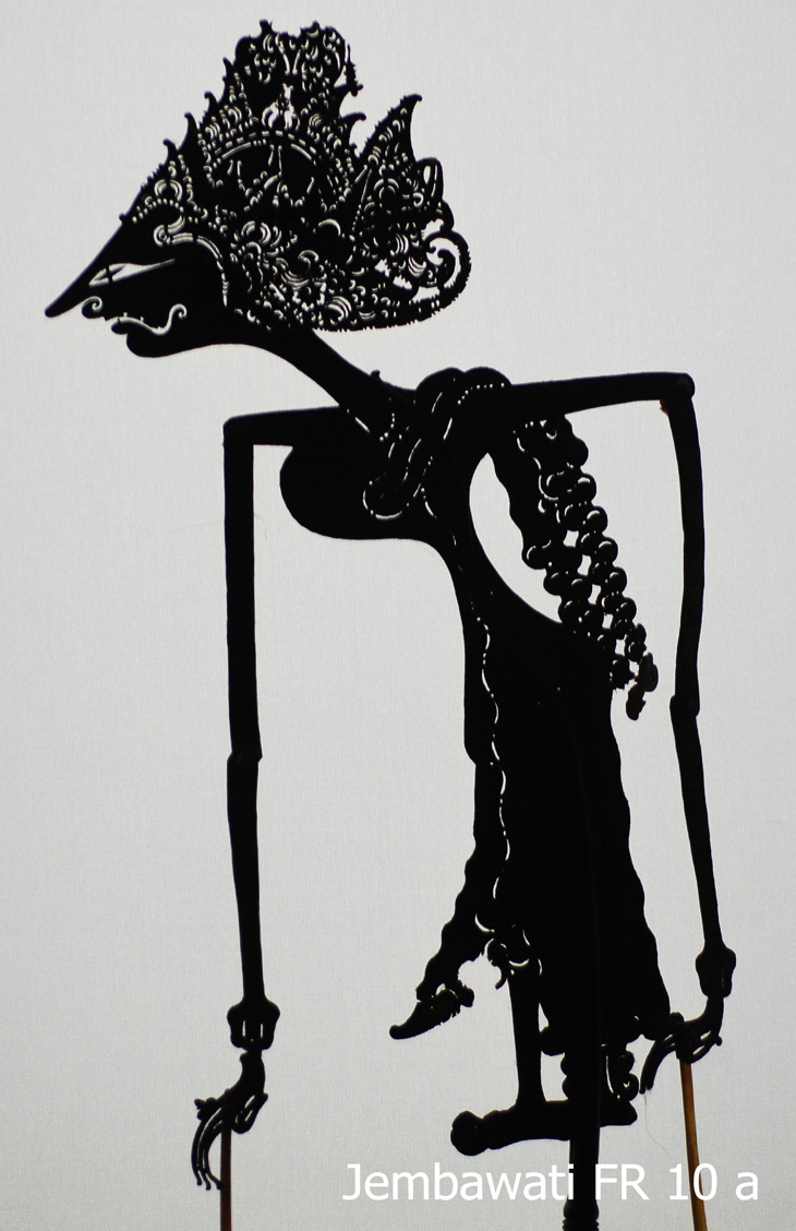 Diese bislang als Jembawati geführte Figur hat nach dem Franke-Benn-Schematismus den Typschlüssel 1-4,5-20-502.60.71. Den gibt es bei ihr nicht. Sie hat nur drei Figuren gelistet mit dem Schlüssel 1-4-20-...., das sind Jembawati mit geradem oder gesenktem Blick, Setyaboma mit gesenktem Blick und Rukmini mit aufrechtem Blick. Die Abb. bei Moog entsprechen bei Jembawati dem Typ 1-4-20.43.502.60.72, bei Setyaboma dem Typ 1-4-20.43.502.60.7 und bei Rukmini dem Typ 1-4-20.43.502.60.7. Das bedeutet, daß die Kombination 1-4-20-.... mit "nicht Haar 43" schlicht in den beiden Standardwerken nicht vertreten ist. Eine Krone vom Mahkota-Typ gibt es normalerweise nur bei Sita und bei Frauen Kresnas.