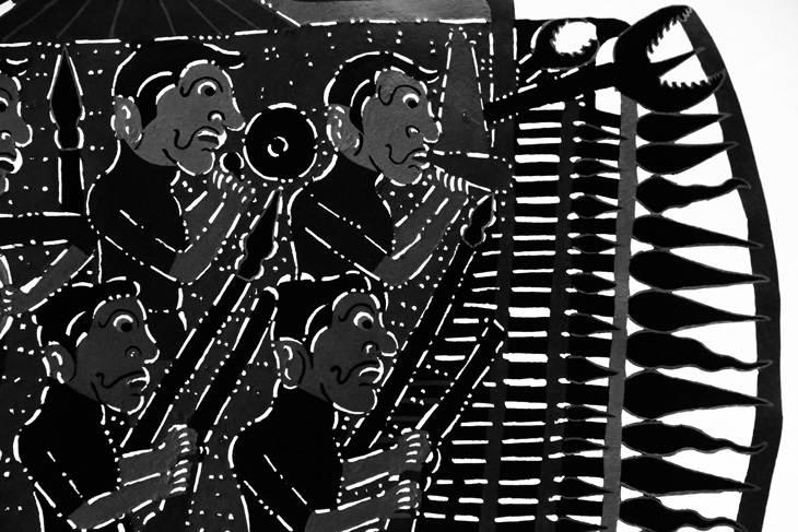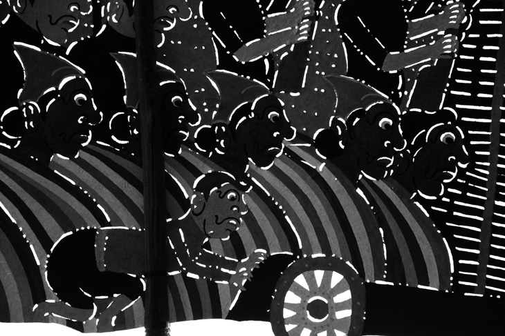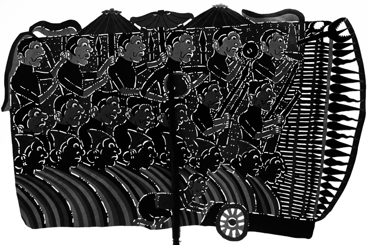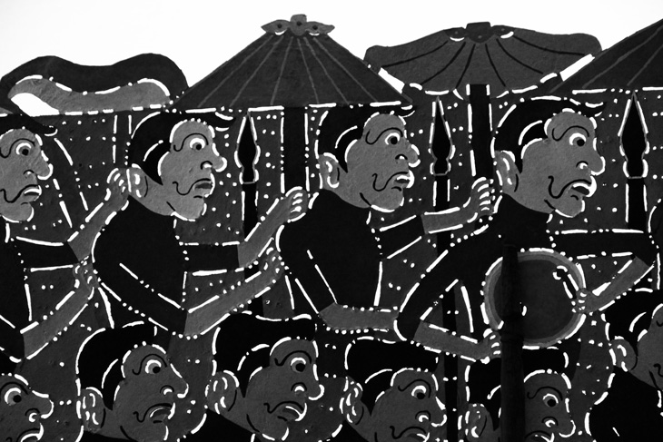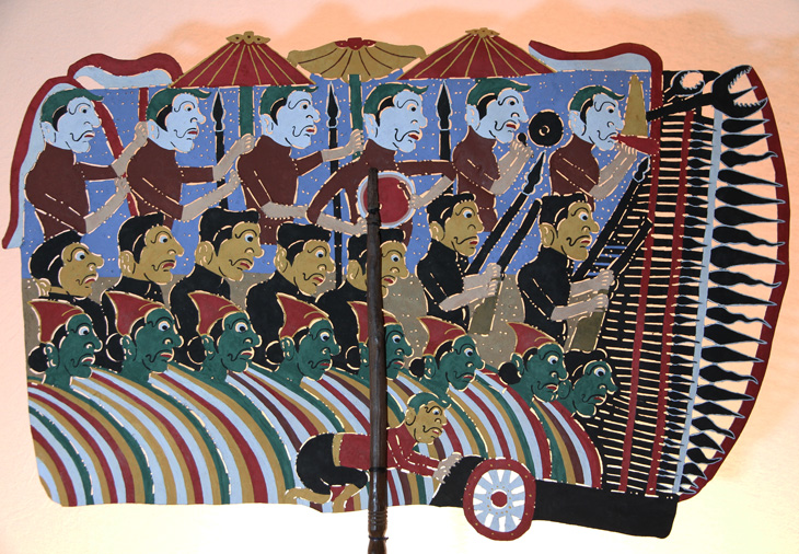 Großfiguren werden im Schattenspiel benutzt, um das Kämpfen
