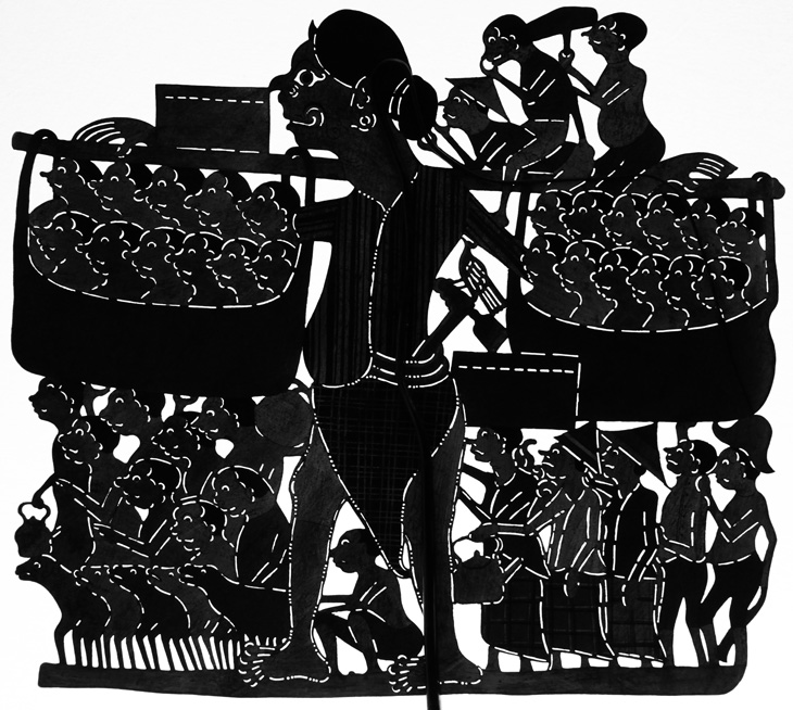 Diese Schattenspielfigur ist eine Massenszene mit vielen