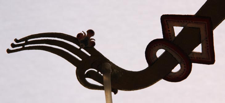entlang bis zur Taille, wo sie in einem Schlangenkopf vorne enden