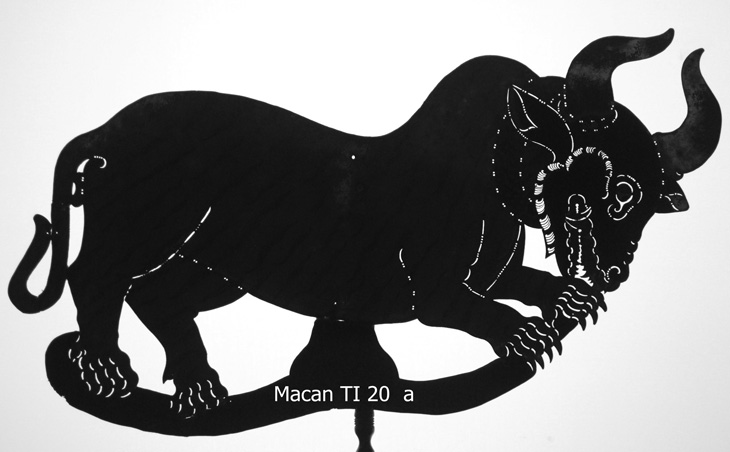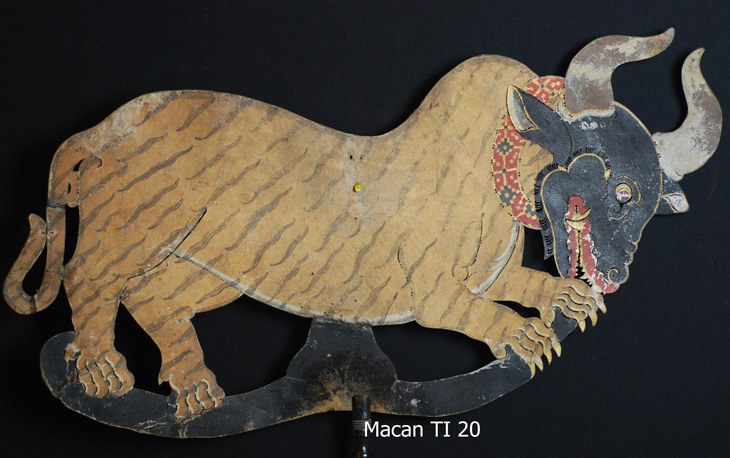 Das Tier hat den Körper und Schwanz eines Tigers (Macan) mit den typischen Streifen, aber einen ganz und gar nicht dazu passenden Kopf eines Büffels oder Rindes, dann wiederum mit dem Gebiß eines Raubtieres und nicht eines Wiederkäuers. Ein Mischwesen unbekannten Namens.
