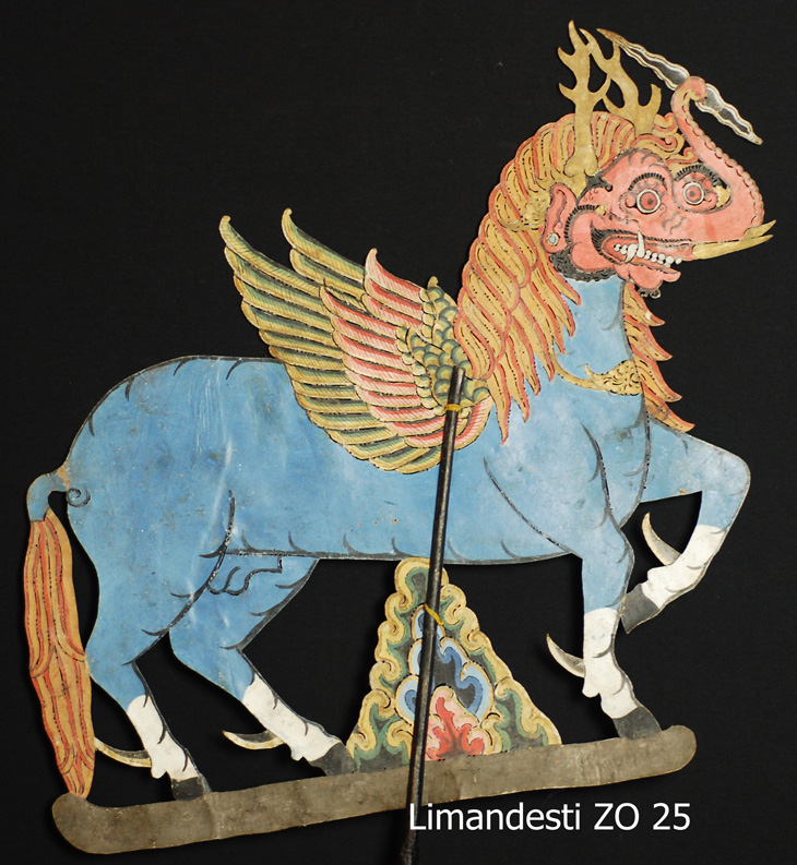 Diese Figur ist ein hochinteressantes Fabelwesen mit Pferdekörper, Vogelflügeln, Antilopengehörn, Elefantenrüssel und Hahnenspornen an den vier Beinen. Die Zuordnung als Limandesti kann nicht verifiziert werden. Wie die Figur korrekt benannt wird, ist nicht bekannt, Hinweise willkommen.