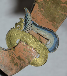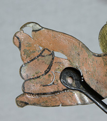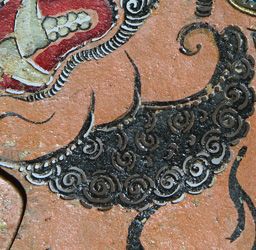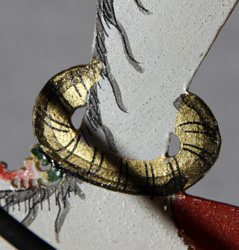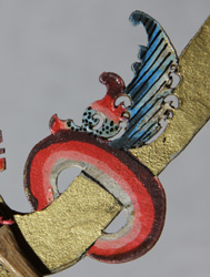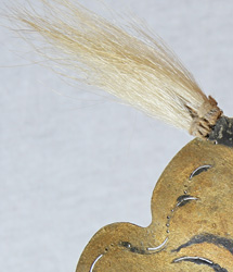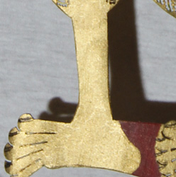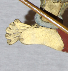einem hinter der Figur hochgebogenen Affenschwanz und