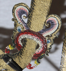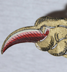 geöffneter, mit Zähnen bewehrter Mund, Augen groß und