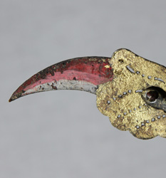 insgesamt hat das Gesicht einen rohen oder wilden Ausdruck, der