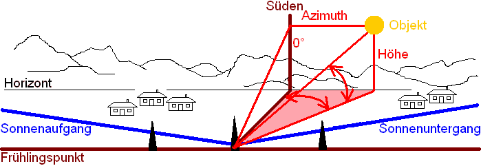oder Nordrichtung z. B. und die Höhe über dem Horizont.