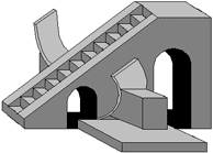 Rampe befinden sich zwei Quadranten wie marmorne Schwingen: Ein