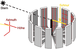 Messen der Positionen von Sonne und Sternen. Das System basiert