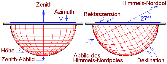 Rektaszension (illustriert im rechten Teil der Zeichnungen). Im