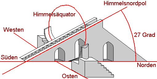 Messung der jährlichen Sonnenbewegung (entlang der Rampe). Mit