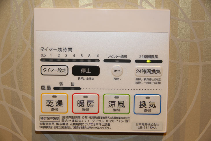 Das ist eine Klimaanlage für das Badezimmer, die man zum Heizen des Bades oder zum Trocknen verwenden kann. Die Trocknungsfunktion ist wichtig, wenn man in der Unterkunft Wäsche gewaschen hat und sie schnell trocken haben will. Die vier unteren großen Tasten stehen für: außen links, gelb: "Trocknen", Mitte links, rot: "Heizung", Mitte rechts, grün: Kühlung, "Kühle Brise", außen rechts, blau: Ventilation, "Belüftung". Auf jeder Taste steht "stark/schwach".