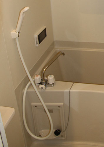 Moderne Badewannen haben in dem technikverliebten Land keinen Wasserhahn (Kyuutou) mit Hebeln oder Drehknöpfen, sondern elektronische Kontrollfelder. Der wichtigste Schalter zum Benutzen ist Ein/Aus (Iri bzw. Hairu und Setsu bzw. Kiru) oder Start (Unten). Der wichtigste Schalter zum Nichtbenutzen ist der Notruf-Knopf (Yobidashi).