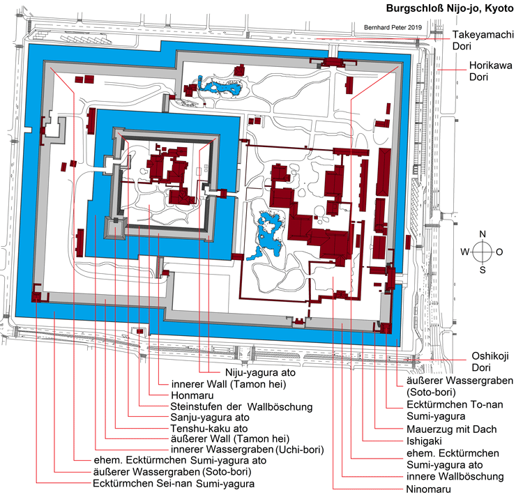 Nijo-jo (1): Geschichte und Pläne, Wehranlagen des Ninomaru