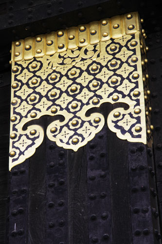 Minami naka shikiri-mon, eisenbeschlagene Holzelemente der Außenseite, Photo 2023