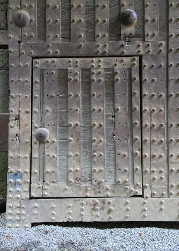 Minami naka shikiri-mon, Durchgang mit eisenbeschlagenen Holzelementen, Photo 2023