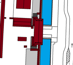 die Längsseite, im Süden ist es an der Südostecke des inneren