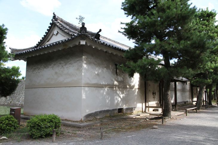 Nördlich des Hauptzugangs im Osten des Ninomaru steht ein 1608 erbautes Wachgebäude (Ban-sho). Weiter nordwärts geht man zwischen Verwaltung (rechts, Jimusho) und Lehmmauer (Tsujibei) hindurch zu Gastronomie und sanitären Ablagen, dann folgt rechterhand das Museum (Shuzo-ko), links das in Nord-Süd-Richtung langgestreckte Lager. Dahinter liegen die historischen Küchengebäude. Noch weiter im Norden steht ein langgestrecktes Gebäude quer in West-Ost-Richtung, das ist ein Dozo, ein historisches Lagerhaus, das dritte, denn die beiden anderen stehen auf der Westseite des inneren Grabens. Ehe der Weg nach zweimaligem Abknicken zum Nordtor führt, befinden sich rechterhand noch einmal sanitäre Anlagen.