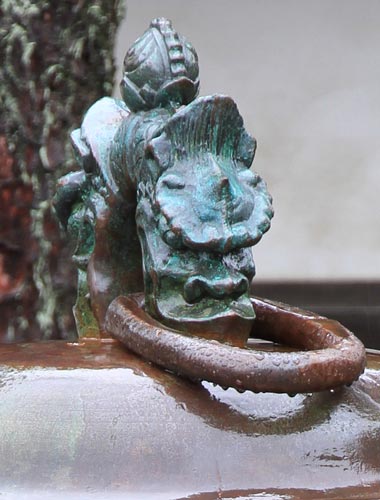 Kuruma-yose, eingesperrter Shishi über der mittigen Relieftafel, Photo 2017