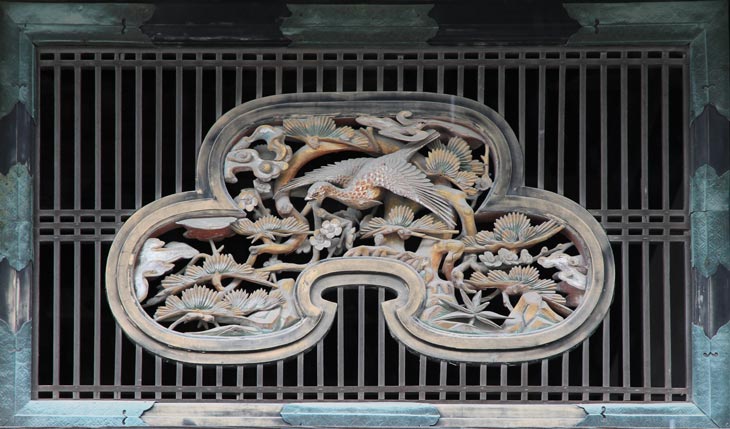geschnitzter Paneele über der Tür wird Ranma-chokoku genannt.
