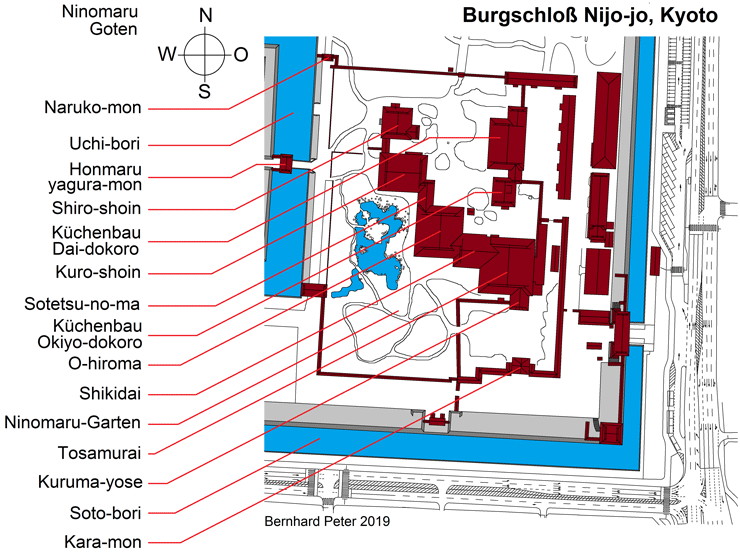 Seiten der Stadt Kyoto: http://www2.city.kyoto.lg.jp/bunshi/nijojo/ - https://www2.city.kyoto.lg.jp/bunshi/nijojo/english/teien/honmaru_t.html - https://www2.city.kyoto.lg.jp/bunshi/nijojo/english/map/index.html - https://www2.city.kyoto.lg.jp/bunshi/nijojo/english/index.html