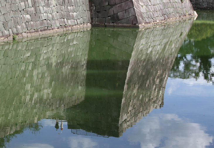 innerer Wassergraben, Ostseite, rechts Ninomaru, links Honmaru, Photo 2017