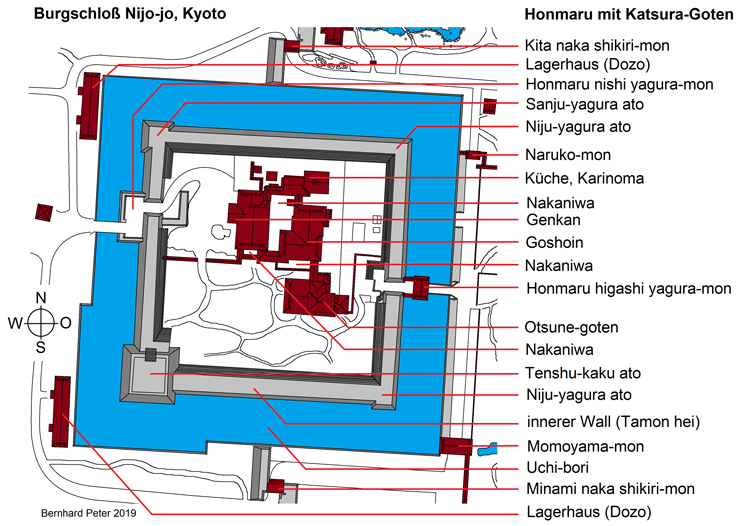 Seiten der Stadt Kyoto: http://www2.city.kyoto.lg.jp/bunshi/nijojo/ - https://www2.city.kyoto.lg.jp/bunshi/nijojo/english/teien/honmaru_t.html - https://www2.city.kyoto.lg.jp/bunshi/nijojo/english/map/index.html - https://www2.city.kyoto.lg.jp/bunshi/nijojo/english/index.html