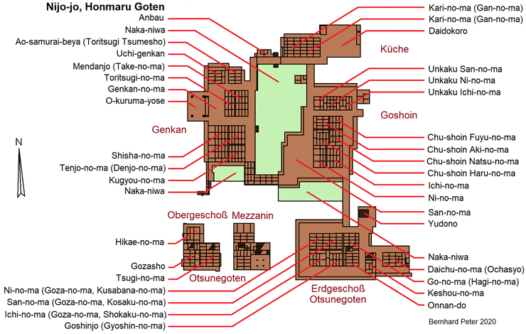 Grundrisse des Ninomaru Goten nach der dortigen Ausfalttafel