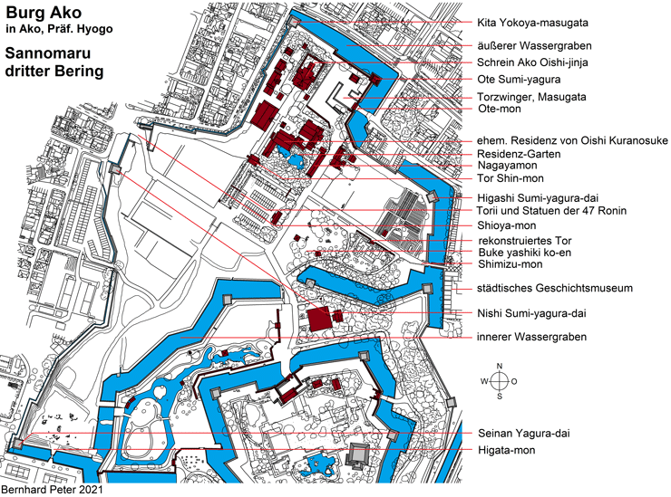Ako-jo, Teil (2): Sannomaru: Otemon und Ote-sumi-yagura - Ako-jo, Teil (3): Sannomaru: Wälle, Ecktürme und Residenzen - Ako-jo, Teil (4): Ninomaru: Wälle, Ecktürme und Bauten - Ako-jo, Teil (5): Honmaru: Wälle, Osttor, Südtor und Ecktürme - Ako-jo, Teil (6): Honmaru: durch das Nordtor bis zum Tenshu-dai - Ako-jo, Teil (7): Sannomaru: Oishi-Schrein