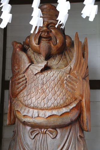 Zwei der sieben Glücksgötter: rechts Daikoko-ten mit dem Hammer und dem Sack, links Ebisu mit dem Fisch.