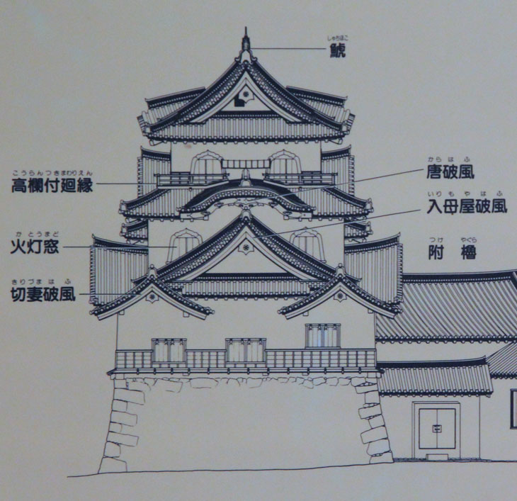 Tenshukaku, Konstruktionszeichnungen und Modell im Museum