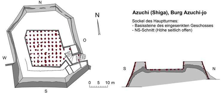 (Präf. Shiga), Burg Azuchi-jo, Teil (1): Beschreibung und Pläne