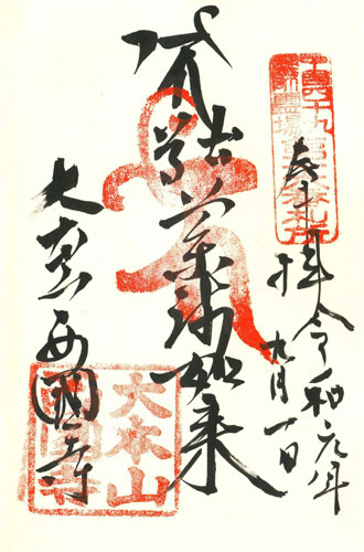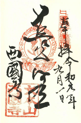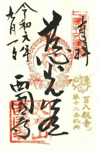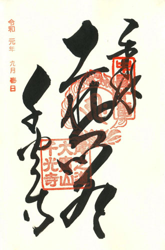 Abb. links: Onomichi (Präfektur Hiroshima), Saigoku-ji (Saikoku-ji), rechte Spalte unten: Datum: 1.9.2019 = Reiwa 1 nen ku-gatsu tsuitachi. Abb. rechts: Onomichi (Präfektur Hiroshima), Saigoku-ji (Saikoku-ji), rechte Spalte unten: Datum: 1.9.2019 = Reiwa 1 nen ku-gatsu tsuitachi.