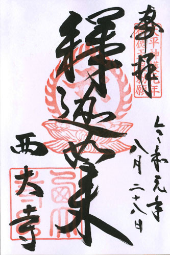 Abb. links: Nara, Yakushi-ji, rechte Spalte unten: Datum: 28.8.2019 = Reiwa 1 nen hachi-gatsu ni-juu-hachi-nichi. Abb. rechts: Nara, Saidai-ji, rechte Spalte unten: Datum: 28.8.2019 = Reiwa 1 nen hachi-gatsu ni-juu-hachi-nichi.