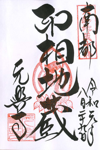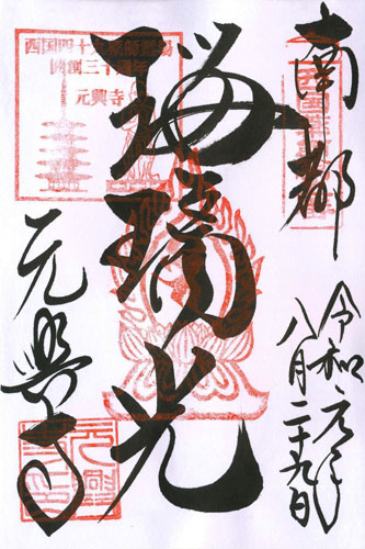 Abb. links: Nara, Shin-yakushi-ji, rechte Spalte unten: Datum: 29.8.2019 = Reiwa 1 nen hachi-gatsu ni-juu-ku-nichi. Abb. rechts: Nara, Gango-ji, rechte Spalte unten: Datum: 29.8.2019 = Reiwa 1 nen hachi-gatsu ni-juu-ku-nichi.
