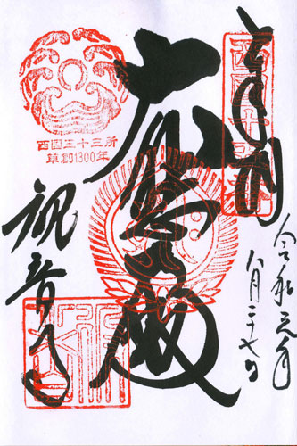 Abb. links: Onomichi (Präfektur Hiroshima), Senko-ji, roter Stempel oben links: Datum: 1.9.2019 = Reiwa 1 nen ku-gatsu tsuitachi. Abb. rechts: Onomichi (Präfektur Hiroshima), Senko-ji, Datum: 1.9.2019 = Reiwa 1 nen ku-gatsu tsuitachi.