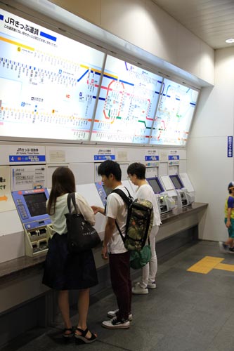 Abb.: Fahrscheinautomaten für Stadtbusse am Busbahnhof Kyoto Eki (Bahnhof).