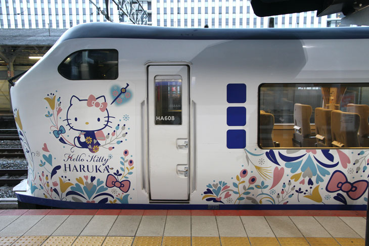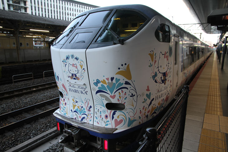 Den Haruka-Express gibt es auch in der gepimpten Version als "Hello Kitty Haruka", am Bahnhof Kyoto, Abfahrt Gleis 30, morgens um 5:45 Uhr, der erste Haruka des Tages mit Ziel Kansai International Airport. Der erste so dekorierte Zug wurde am 29.2.2019 in Betrieb genommen.