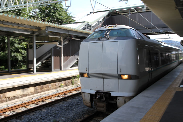 Das ist der Limited Express Kuroshio, der von JR West betrieben wird. Er verkehrt zwischen Kyoto und Shingu und hält in Kyoto, Shin-Osaka, Osaka, Tennoji, Hineno, Wakayama, Kainan, Minoshima, Yuasa, Gobo, Kii-Tanabe, Shirahama, Tsubaki, Susami, Kushimoto, Koza, Taiji, Kii-Katsura und Shingu. Er benutzt dabei die Schienenwege der Tokaido-Hauptlinie, dann der Osaka Loop Line, dann der Hanwa Line und der Kisei Line (/Kinokuni Line). Es ist einer der besten Züge zur Erkundung der Halbinsel Kii. Hier ein Zug der 287er-Serie.