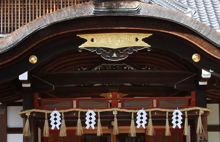Typische Markierung des Übergangs durch Shimenawa mit Shide.